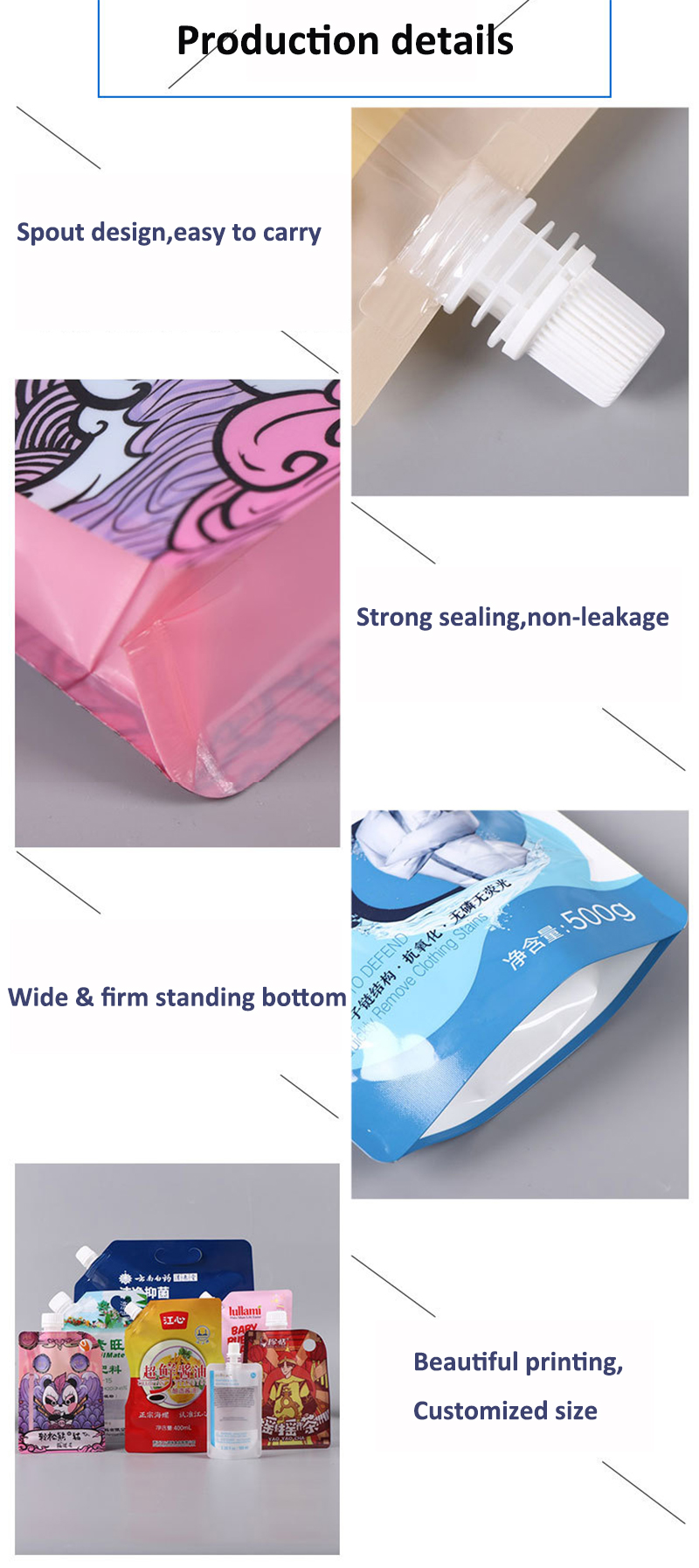 Custom 200ml/400ml/500ml Aluminum Foil Spout Pouch Small Sachet Drink Pouch Customized Logo Corner Spout
