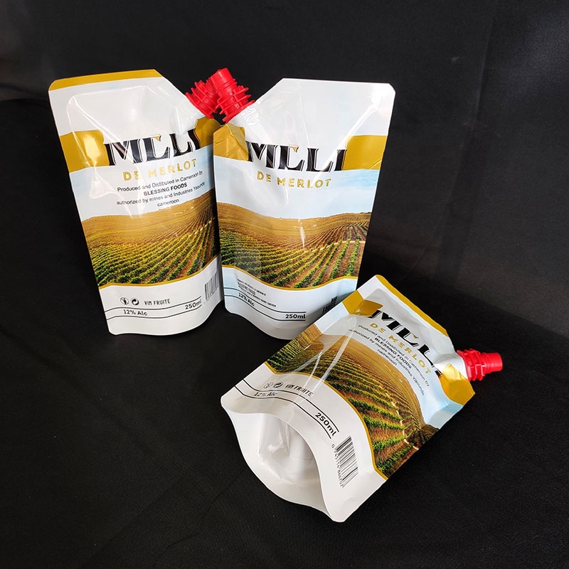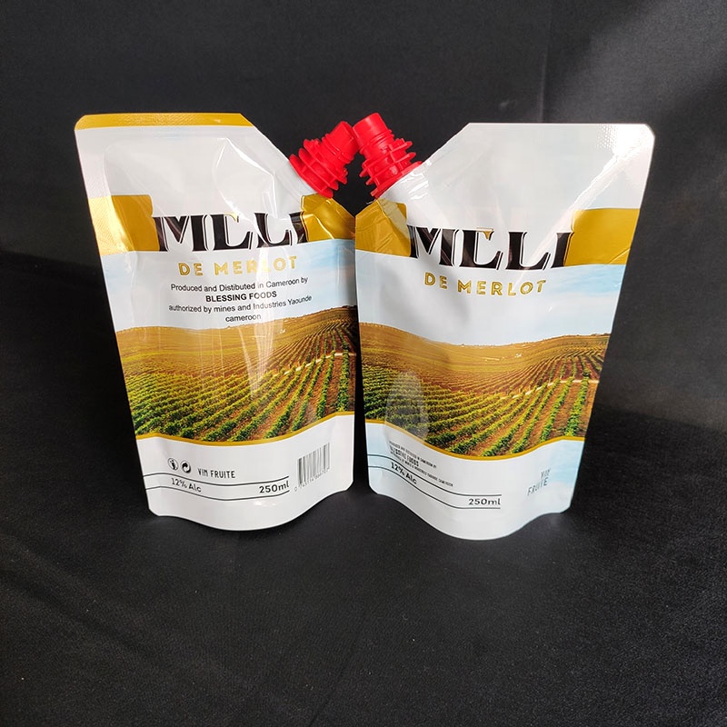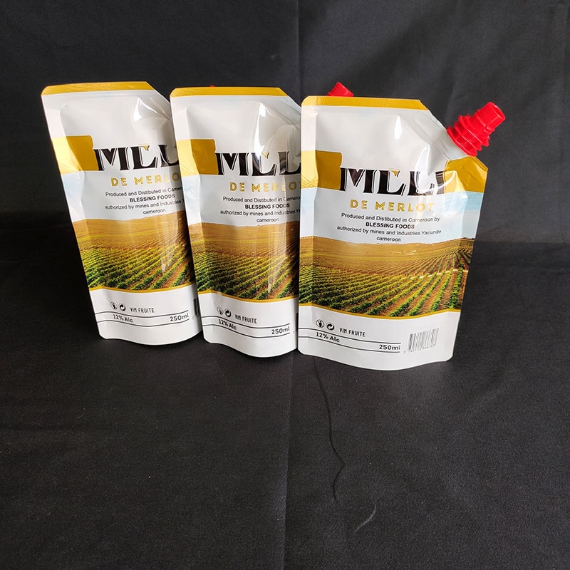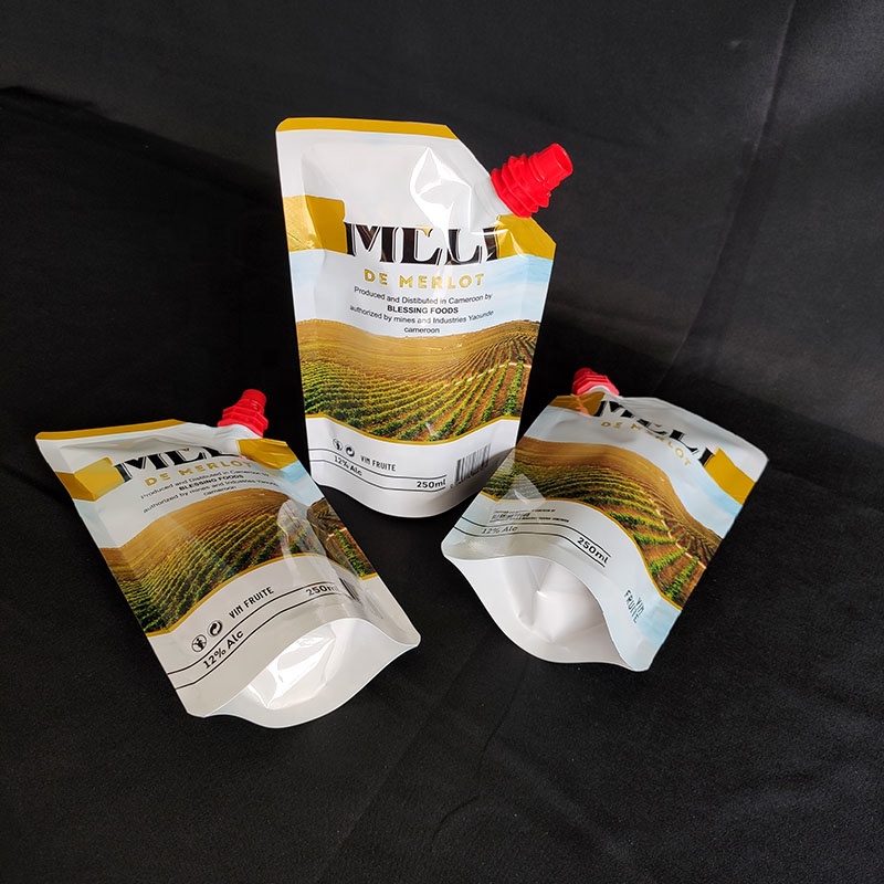 OEM Customized Aluminum Foil Stand Up Spout Bags Red Wine Liquid Spout Pouch For Liquid